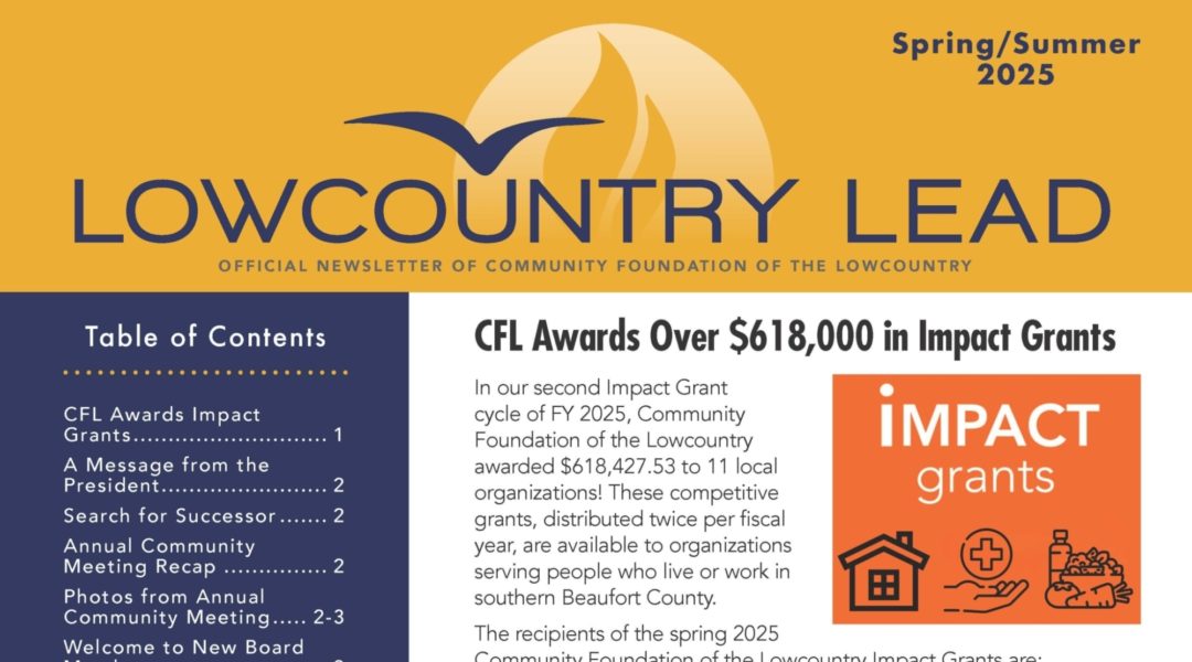 The Spring/Summer 2025 issue of the Lowcountry Lead, Community Foundation of the Lowcountry's newsletter, is now available! Click below to read!