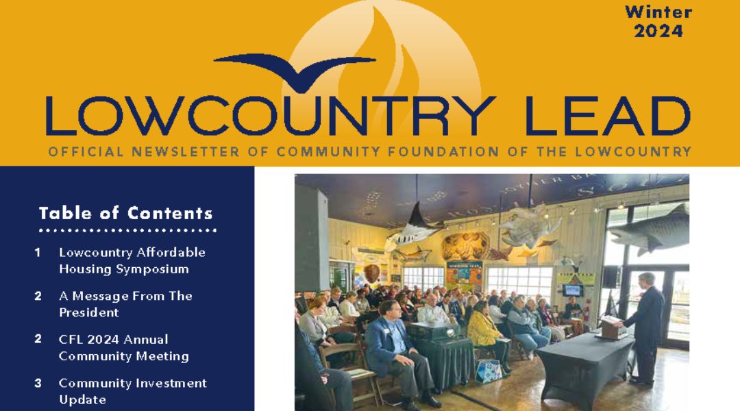 The Winter 2024 issue of the Lowcountry Lead, Community Foundation of the Lowcountry's quarterly newsletter, is now available! Click on the arrow below to read the online version.